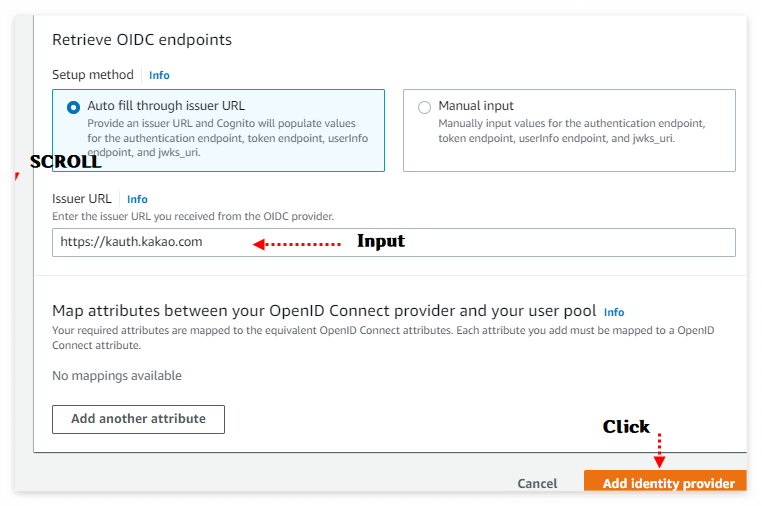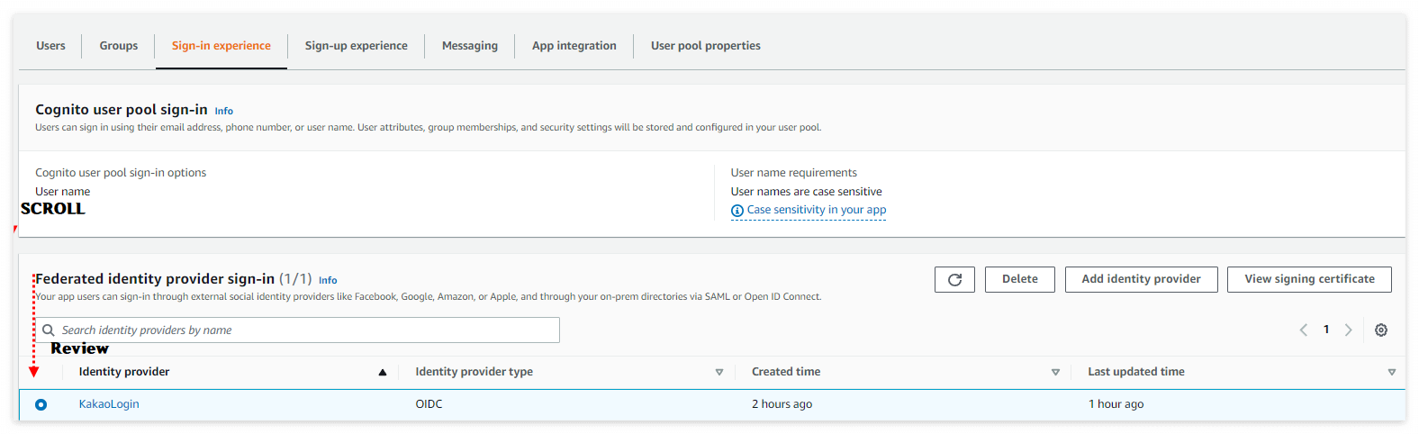 - Cognito에 연합 신분 제공자로서 카카오 로그인을 등록한다.