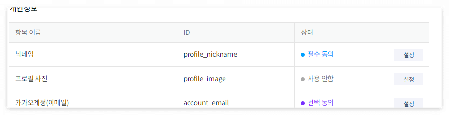 profile_nickname·account_email두 가지를 동의항목으로 해서 연동을 테스트 할 거야. 종막에 카카오 유저의 닉네임과 이메일 주소를 Cognito 유저 풀로 가져오게 되겠지.